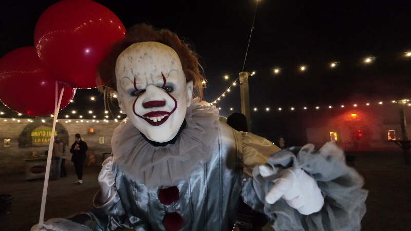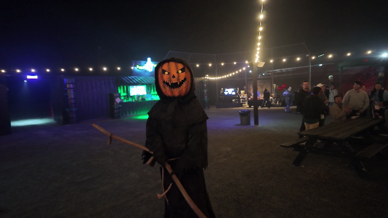 Queue actors also look perfect for taking photos with guests and generally lurking around to get a good scare while backs are turned. There’s a Pennywise wandering about with his signature red balloon, as well as a really interesting pumpkin-headed reaper. The reaper wears a large helmet-like mask under a hooded robe, and carries a scythe, or is it a sickle? In any case, these folks are keeping the fun times going and the spooky vibes flowing.