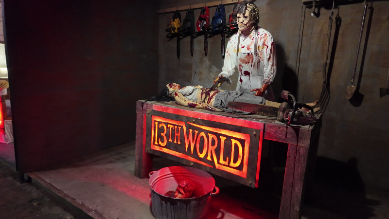 I don’t usually get scared in most haunts, but I can see why so many people were screaming at 13th World. They are playing on a handful of classic fears that really get the juices pumping, like clowns, hillbillies, chainsaws, and Catholicism. There were actually a few actors and even animatronics that took me by surprise, coming from places that I was definitely not expecting. A lot of the scares don’t come from hiding spots, rather the actor is in plain view as you approach, and they just do something unexpected.