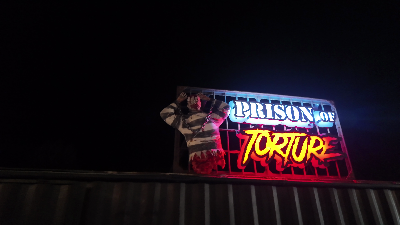 Boasting a huge midway, three small indoor attractions, and one insanely long trail, 13th World Fright Park is absolutely at the top of their game. I am blown away by the fact that I didn’t know about this haunt before attending, and now I want to make the drive to see them every single year. The main attraction, Moonlight Mayhem, is a standout among outdoor trails, and mayhem doesn’t even begin to describe the level of intensity experienced within. All ticket holders will also be able to see three smaller indoor attractions. Hellfire House, a twisted maze of darkness and fog that will leave guests praying to find the exit; North Pole Nightmare, when Christmas gets taken over by South Pole clowns; and finally, Prison of Torture, where your nightmares become reality.