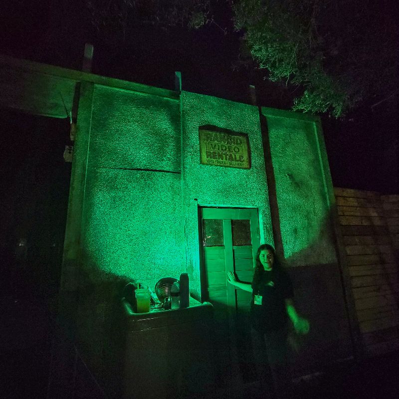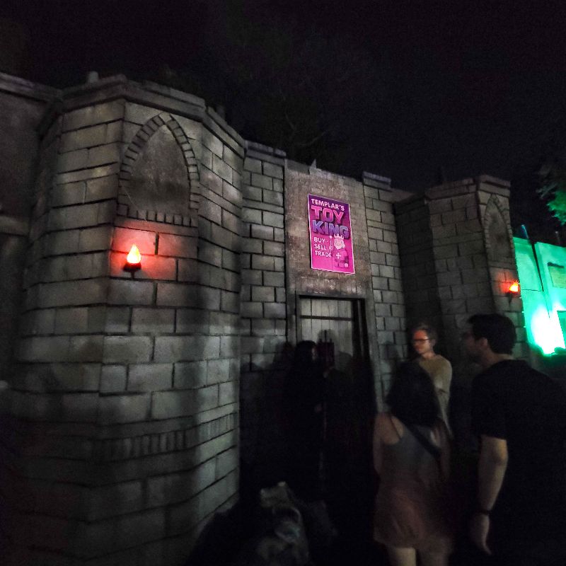 The scares in a Cousin’s Cafe were some of the most creative for the night, we enjoyed that house the best. It was like stepping out of Florida, right into New Orleans while experiencing some frightfully awful people while we were there! Rancid Rentals would probably come in at a close second. The story to that one was truly unique, and it was awesome to be able to walk through all these movies like we were a part of each one- even if they were downright terrifying! Templar’s Toy King would be our third choice, as we felt the scenes and story weren’t as strong as the other two were, and the actor at the end with the chainsaw just let us walk on by without really trying to scare us. Kinda bummed me out that we didn’t get that last scare like those in front of us got!