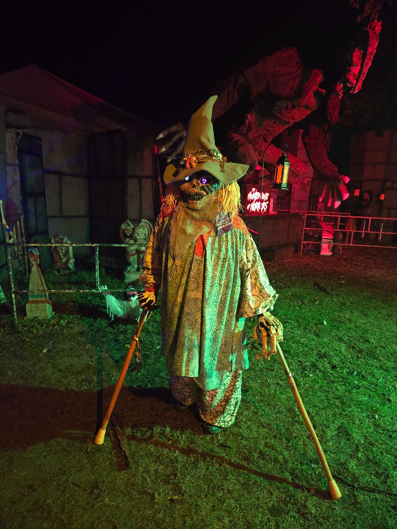 The area is mostly grass and flat ground, and scare actors were walking around in various costumes. I did talk to some they said that they had accessories like wings and horns, but were not wearing them because of the light rain we were having.