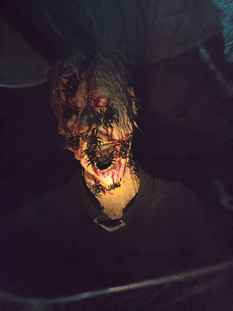 The house is all inside and weaves in and out of various types of rooms and is highly decorated. There are various animatronics and scare actors throughout. It’s advertised on the website with a lot of movie references. I saw characters from Five Nights at Freddy’s, Terrifier, The Exorcist, Bloody Mary, Acracniphobia, and a few others. I’m sure I missed several other movie references.