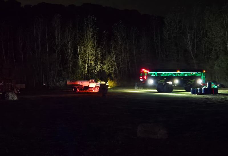 The Zombie Purge bus and Hayride took almost identical routes in the same wooded area, so the field actors were the same. They had maybe 10 or so actors total around the entire course. The field actors were a mix of moving around and standing still for paintball. For the hayride, they would approach the trailer, and a few would talk some.