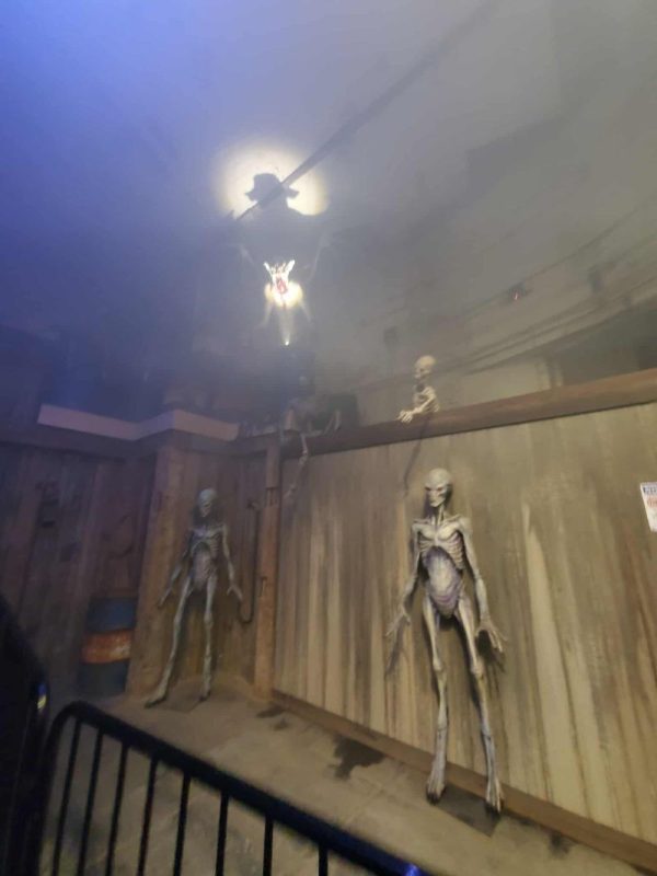 There are features of these historic haunts that cannot be seen anywhere else. Every year, we are stunned by the Tesla coil and the vertical wind tunnel in the Laboratory, but there were additions this year that were equally as stunning. Our favorite was a room that was turned into a white abyss, and the moment we entered, we were isolated from each other as the visibility dropped to nothing, and the lights added above made the room look like it stretched up infinitely. There are more animatronics in the Laboratory, and many of them are truly horrifying as they evoke natural fears of medical treatments going horribly wrong.