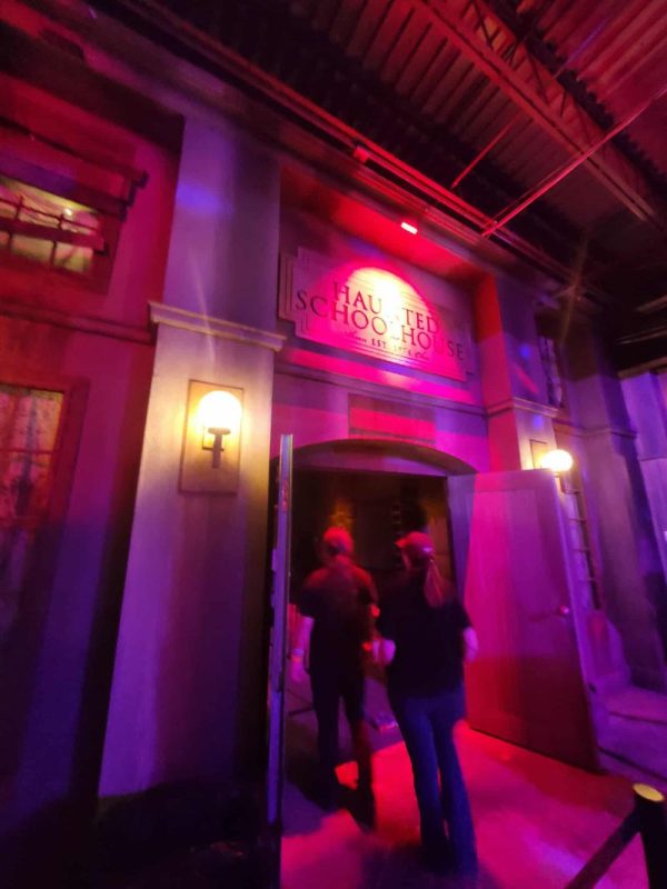 In the Schoolhouse, there are old-school horror tricks as well as new ones. The rooms are built to carry the smells of the places they portray, transporting you from a classroom to a stuffy attic to a swamp. There’s a rattling room in here that really tilts your perspective, and a bathroom that mixes human wit and mechanical mirth to send you along laughing. There are tricks done in the basement of the Schoolhouse that will linger with you, and every detail from the cool stone of the walls to the distant dripping of the dungeons enhances the fear.