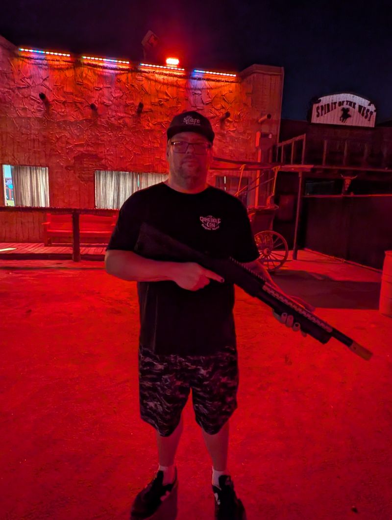 Apocalypse Rawhide is a fairly unique experience in the world of haunted attractions. I’ve seen the occasional zombie paintball, and one memorable experience in Columbus has an assault weapon themed haunt, but it is very rare to give your haunt goers weapons. Being armed inherently makes things less scary, it gives you agency and a means to make the scary things go away. This leads to a much less scary haunt, but it does absolutely appeal to the childlike sense of glee in all of us. It also very much appeals to children of a certain age, which is why I brought a 13 year old along. I had a genuinely fun time making my way through the old west setting and blasting zombies with my laser shotgun. I don’t know that I’d go out of my way to see it in future years, but if I was in the area or already there to attend their Glowing Pumpkins event I would absolutely make a reservation. Our junior jackalope, however, found it to be some of the most fun he’s ever had in his life.