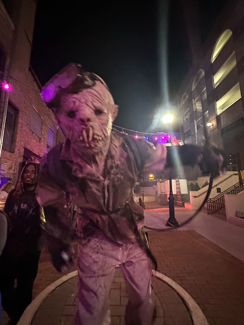 What a way to start the Spooky season! Basement of the Dead (BotD) tends to be one of our first stops of the Halloween season, as they usually open earliest in our area. The night we visited was a reminder of how amazing of a show they put on. From the moment we left our car in the lot across the street, we could hear their house DJ blasting tunes. While we were waiting for the light to change colors to walk across the street, there was a group of girls running for their lives from a chainsaw actor in hot pursuit. BotD is a clear reminder… tis the season! And we were in for a treat as the team behind BotD and their sister haunt, Disturbia, has been busy providing another great season.