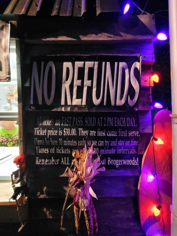 The parking lot is large and easy to navigate. The concession stand serves hearty haunt-night staples, and we spotted plenty of guests wearing Boogerwoods shirts from past years, a testament to the haunt’s devoted fan base.