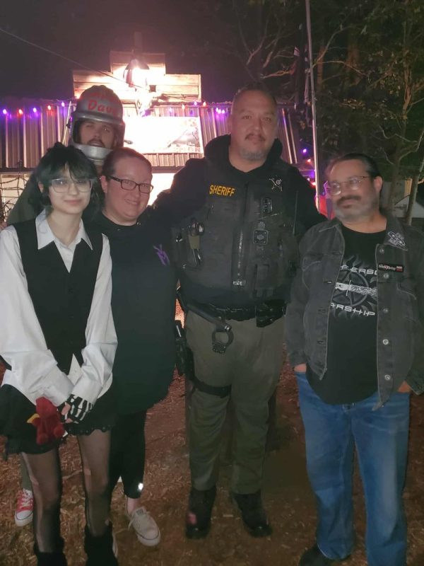 The queue area had its own performers this year – Art the Clown, a Grim Reaper, Wednesday and Morticia Addams. We also got visits from the infamous Booger Busters and even got our picture with a tall, dark, and handsome sheriff’s deputy who added charm to the pre-show vibe. Even while waiting, guests are kept engaged, entertained, and primed for what’s to come.