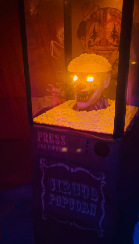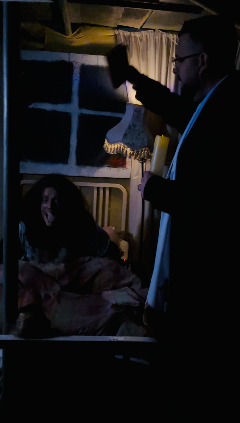 While this wasn’t the scariest maze we’ve experienced, the actors clearly put all of their effort into making this quite a frightening journey. And yet, there was also a fun humour to some of the scenes, especially the exorcism scene, with the priest cracking jokes, making us feel a little safer until we looked at the evil girl in bed and realised maybe we weren’t so safe after all! Many of their characters were eerily menacing, especially one of the clowns and of course the butcher, who stalked us through the rooms, often catching us unawares. The actors did a great job of offering scares for each and every person, and we felt involved and seen throughout the rooms, never safe no matter what order we entered the rooms in. We also were touched a bit in this maze, which offered several jolts we weren’t expecting!