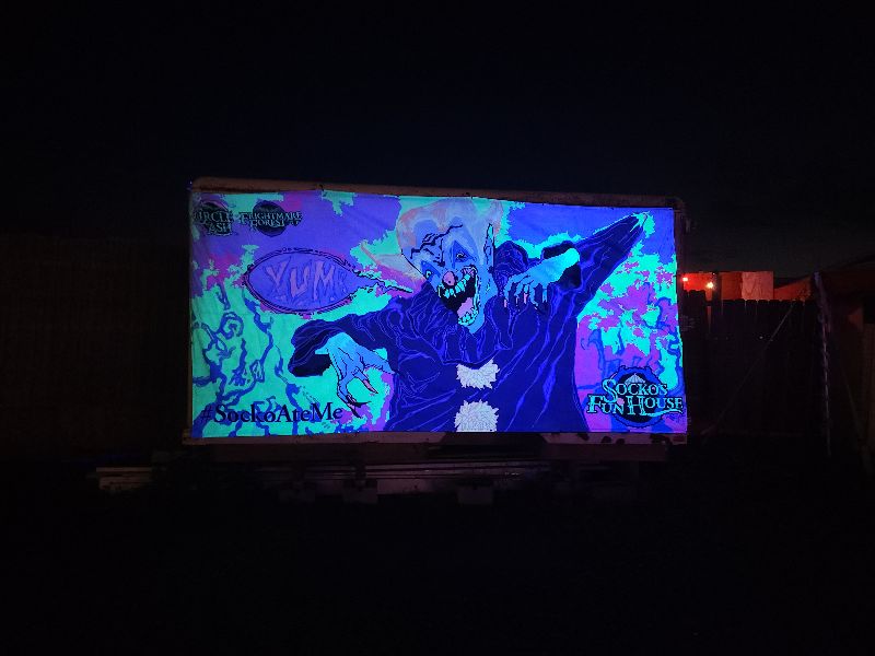 Socko’s Fun House had the more in-your-face scares, with loud, energetic clowns that didn’t hold back. The use of chain-link fences in the big top tent area made it feel like you were trapped in a chaotic maze, surrounded by laughter that quickly turned sinister. The actors were relentless, popping up from unexpected spots and keeping the pressure on the entire time. They weren’t afraid to get close, using everything from props to sudden noises to keep guests jumping. Chainsaws were used to great effect here, too; the roar echoing through the fog and fencing sent people running for the exits. Between the bright lights, disorienting fog, and nonstop energy from the cast, Socko’s Fun House brought a wild, chaotic kind of fear that left everyone laughing and screaming all at once.
