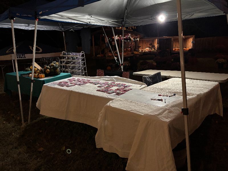 In addition to the trail, some fun extras were included with admission. Groups could hang out at the picnic tables and enjoy the music or grab a photo with any roaming actors. These were optional and involved payment, but merch was available at the haunt’s ticket booth and they also had a dirty soda truck on site selling tasty drinks. I grabbed one before I left.