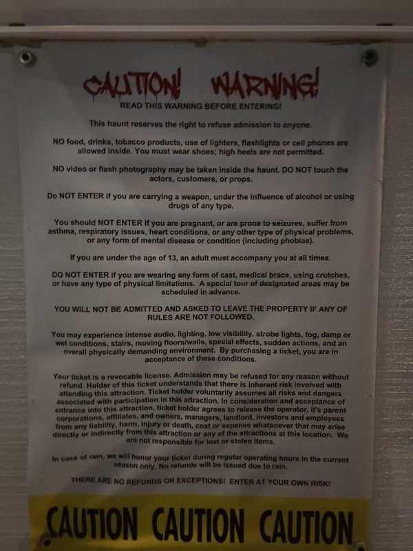 When you arrive at the entrance of the haunted house, you have the option to grab some concessions or get a picture at their photo ops before waiting in line. You have options for $25 for general admissions or $40 for a fast pass for 15 minutes of fear. When you’re done, you can stop by the souvenir stand and grab some goodies. They also have a sitting area if you need to sit and take a breather. They also encourage the actors to take breaks to help keep energy up for everyone, and some of the actors utilized that moment to taunt and scare visitors. I feel we got a bang for our bucks.