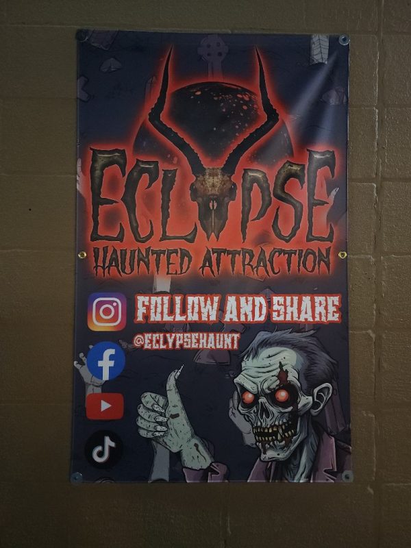 Pizza and a possession, truly a fun way to start a weekend! The drive into Iowa City was interesting; foggy/misty weather added to the spooky vibe even before we got to Eclypse. From the moment we stepped foot into Eclypse Haunted Attraction, we were immersed and hooked into the storyline throughout the entire haunt! Located in a big bustling Iowa city, Iowa, at the end of a strip mall above a Pizza Ranch.