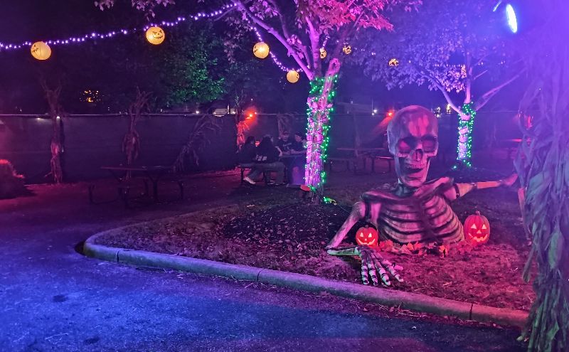 Fear Columbus was off the charts great. It all started with the party-centric midway, adjacent to the entry area. The festive, happening atmosphere dazzled us with bright colorful lights, funky dance music, roaming actors having a blast with customers, a gaming area with cornhole boards and jenga tables, snack and beverage kiosks, food trucks, and photo ops – much bigger and more of a spectacle than anything we’ve seen here in the past.