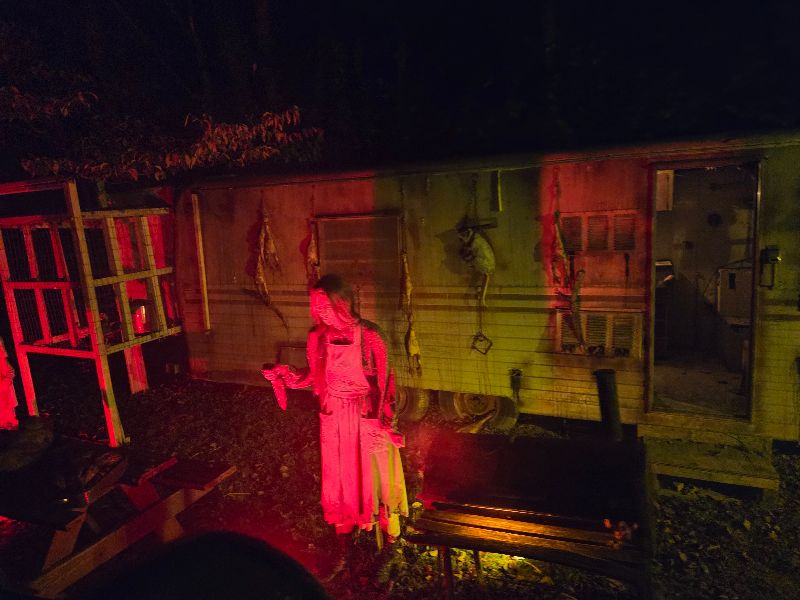 Psycho Path: Positioning and placement played a major role here in making the most of scare scenarios, as actors took their place in natural dark hiding spots of the woods and the blind spots of structures. With the scare snare set, a precisely timed pounce, yell, or shake of a noisemaker was enough to do the deed. Well-placed animatronics also got us a couple of times.