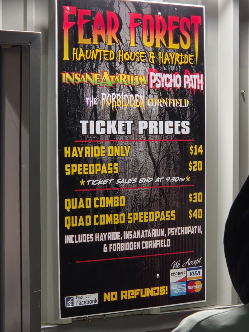 The speed pass version of the quad combo is $40. You can also go for the hayride only for $14 ($20 speed). None of these prices have changed in at least four years. That’s fantastic!