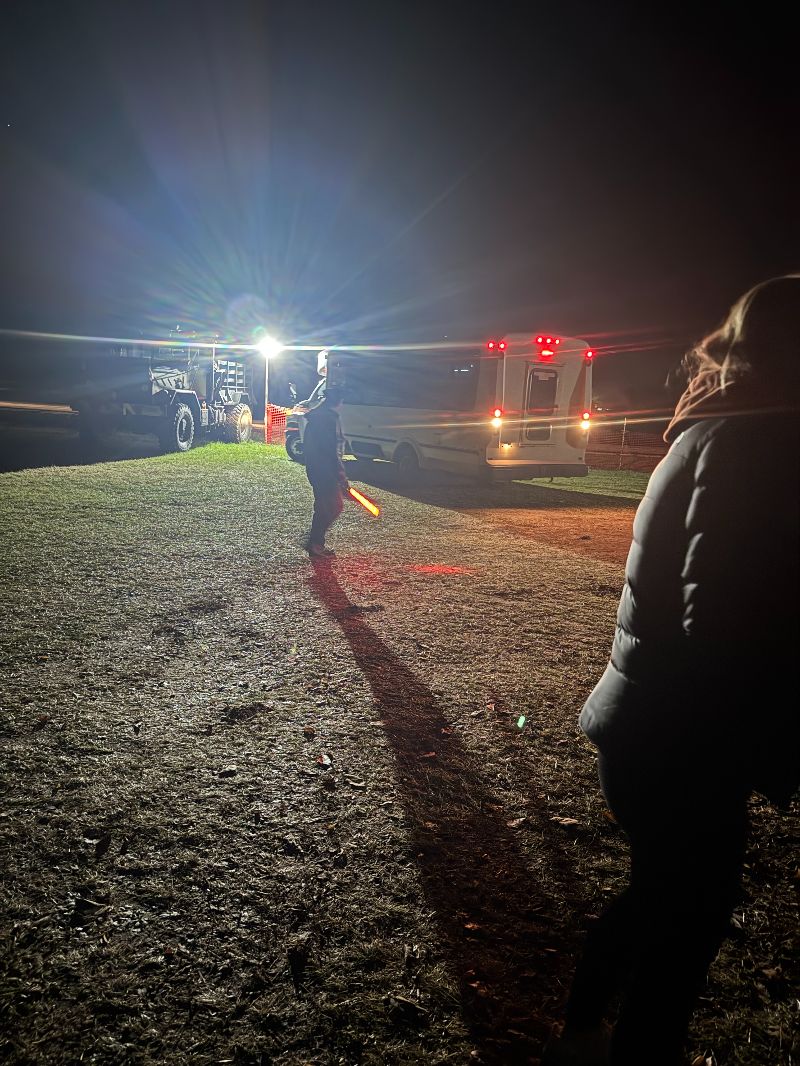 Once we pulled into the main lot, the parking lot was a bit chaotic and hard to find a spot. We picked two spots, but were told that these random spots we chose are for the handicapped. There is no clear signage for that posted, nor when asking two staff members where we should park in this main lot, they couldn’t give us an answer or help us with our question. Our team was directed to leave and go down the road to a secondary lot. This lot could also use more signage besides the two poles lit up, and have something posted on the website regarding the parking situation. Once in this secondary parking lot, the main tall light generator was not up and running.