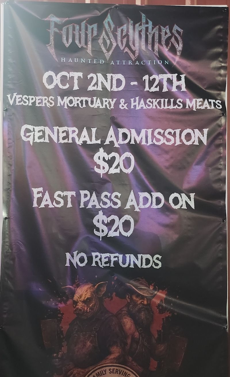 For those looking to shorten their wait, Four Scythes offers a Fast Pass add-on for $20, allowing guests to bypass the main queue. The next level up is the Ultimate VIP ticket, which grants front-of-line access along with a souvenir t-shirt, stickers, and even s’mores! Groups of 20 or more can also take advantage of discounted ticket pricing.
