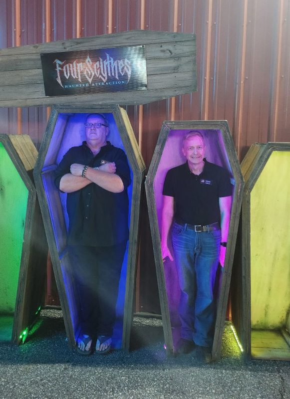 Four Scythes Haunted Attraction is celebrating its sixth year of delivering frights to the public. Located at the Cumming Fairgrounds, the talented Four Scythes crew impressively assembles the entire haunt in just one month and operates for only eleven nights during the fair. After the fair closes, they add a third themed attraction and reopen for an additional four nights of terror.