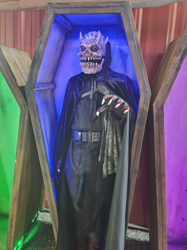 Then there’s the spider room, crawling with oversized arachnids and home to a performer wearing a grotesque spider mask. It’s a perfect trigger for arachnophobia, and paired with the dim lighting and confined space, it makes for an unsettling moment in the haunt. And of course, if you suffer from sanguivoriphobia – the fear of vampires – Vesper’s Mortuary offers no relief, as it’s filled with a wide variety of bloodsuckers waiting in the shadows.