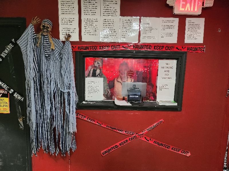 At the haunt itself, the ticket booth displays rules for visitors, though ticket prices are not clearly listed on-site.