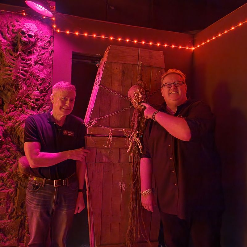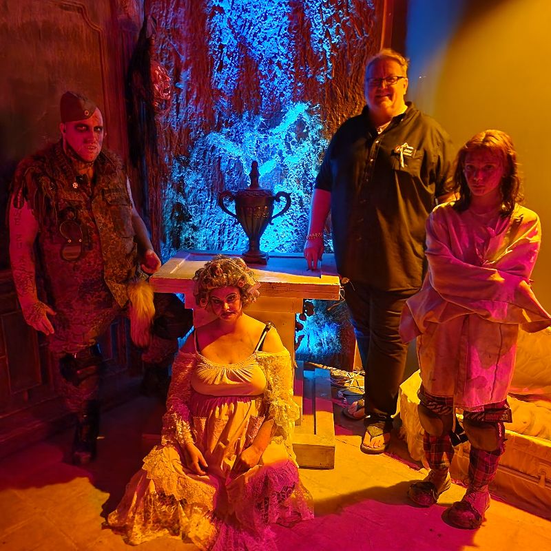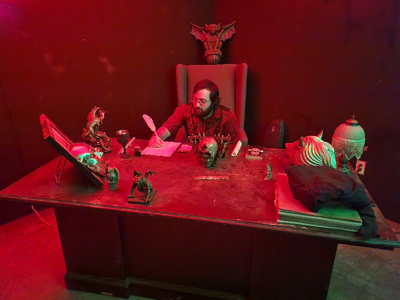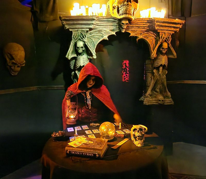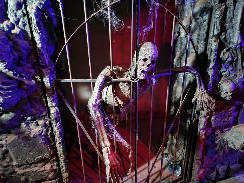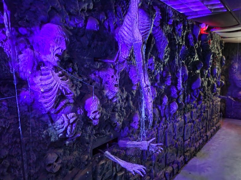If you survive the catacombs, don’t rush out too quickly. Before exiting, you’ll pass through a long red-lit hallway featuring two or three themed photo ops. Take a few moments to snap some pictures with your group before heading out of the building. There might even be a creature lurking about who’ll be happy to take a selfie with you.
