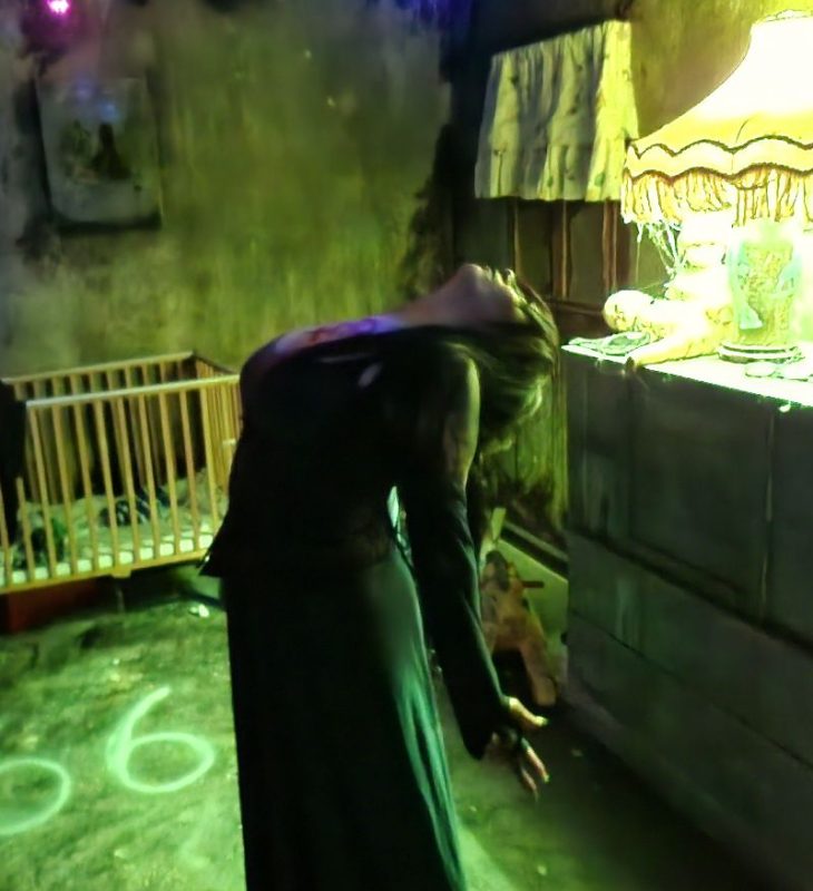 While Hell in Helen doesn’t lean too heavily on phobia-based themes, they still incorporate a few unsettling moments: a spider-infested corridor lined with web-covered slat walls, a claustrophobic closet you must squeeze your way through, and a blackout room filled with sheet-covered ghost figures that disorient you under pulsing strobe lights.