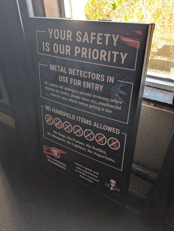 Upon arrival, security checked us with walk-through metal detectors to ensure safety was a priority. The customer service at Hush is top-notch; they greeted us with smiles and were happy to help in any way they could. The website provided us with all the necessary information to book a visit easily. From ticket prices, location, dates, and times to frequently asked questions, the website is highly user-friendly, allowing users to access any information quickly and easily. One thing we appreciated was that this haunt is wheelchair accessible, which is something we don’t often see.