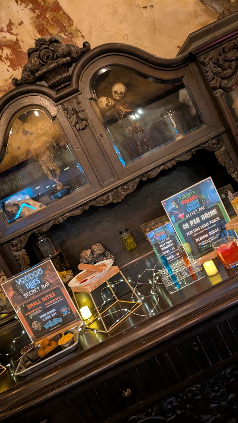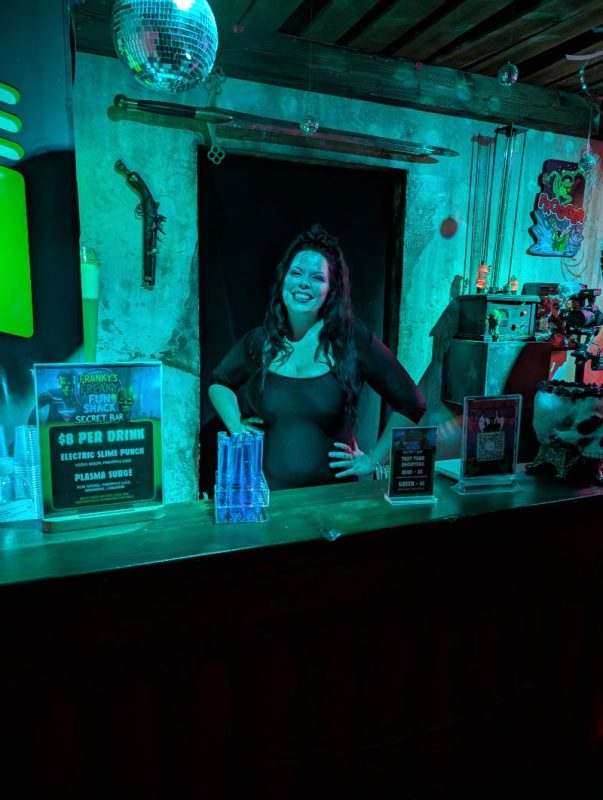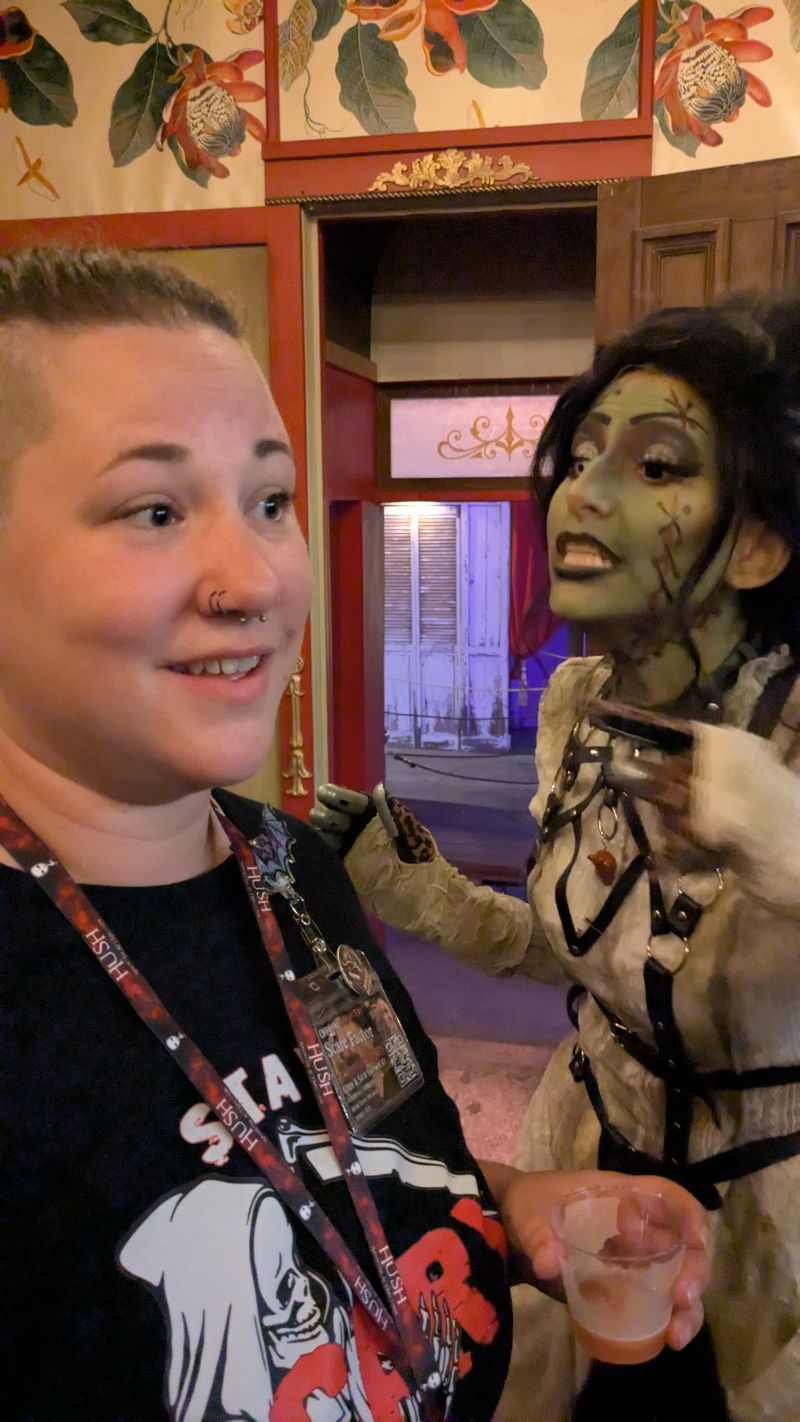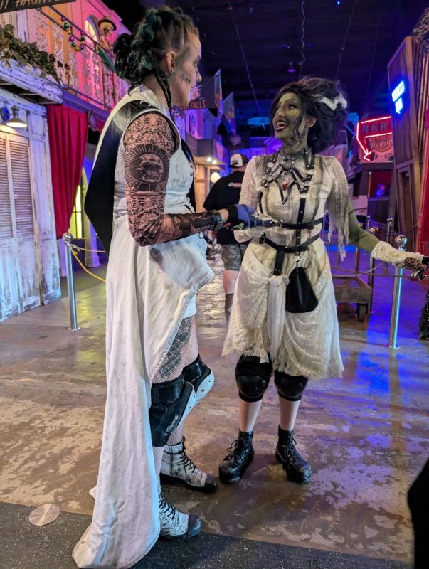 Upon arrival, we were immediately greeted by numerous actors in the queue, eager to interact with us. They were full of energy and ready to entertain. Each queue actor understood the assignment and fully immersed themselves in their character. Our favorite was Frankenstein’s Monster’s Bride. She was funny, charismatic, never broke character, and was a blast to be around.
