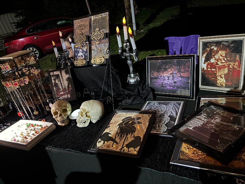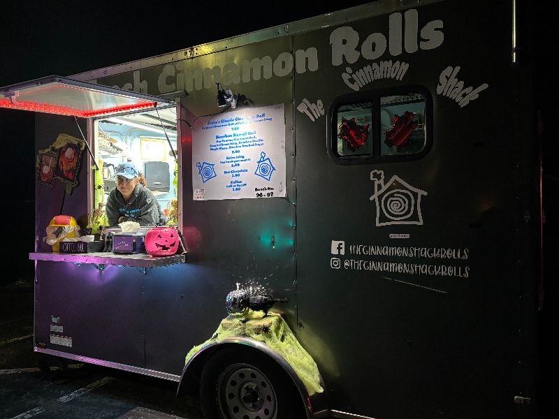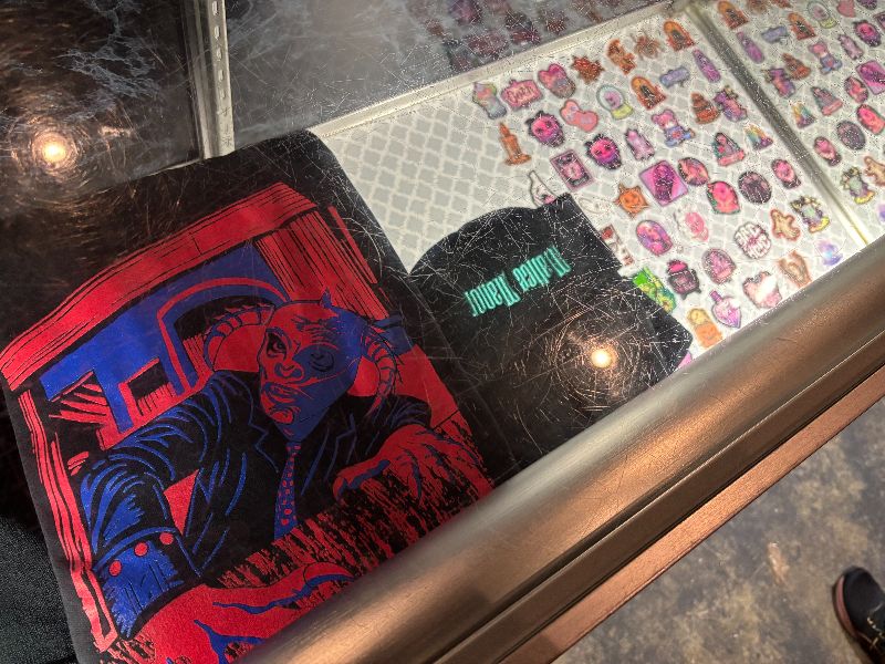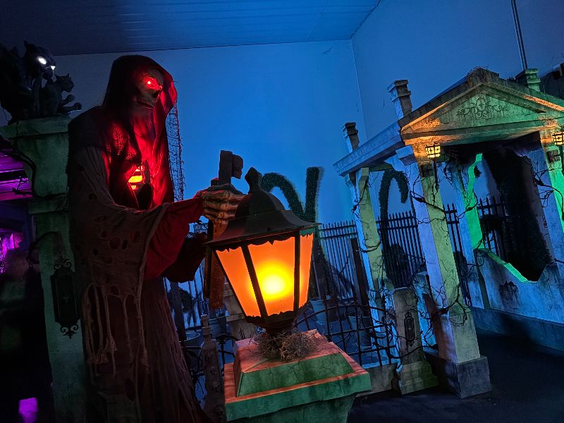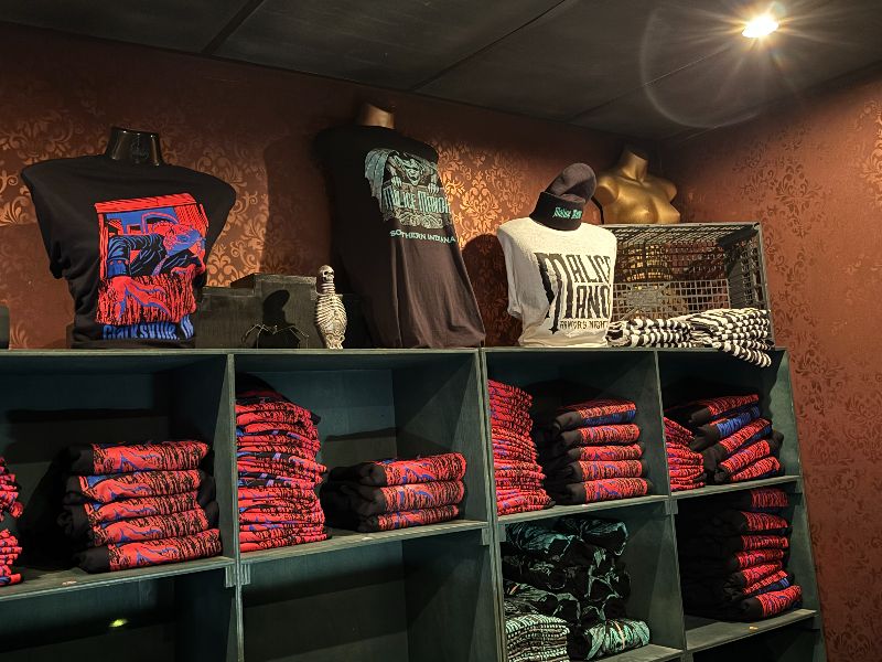 The Manor’s minions and monsters were loath to see us go, but we had no intention of becoming the newest additions to Lord Rancor’s collection! We escaped Malice Manor in approximately 12 minutes, with a base ticket price of $25.00, which brought their MPD (Minutes Per Dollar) rating to 0.48. While that’s on the short side in comparison to the cost of admission, we were highly satisfied with the show we received. There were plenty of actors and special effects to scare us around every turn, the environment was immersive, and our tickets came with some extra entertainment too: decor and photo opportunities in the lobby, fun music, a projected movie, and random character appearances in the queue. For those with some extra cash, the haunt had a merch counter, and there were vendors outside selling jewelry, cold drinks, and cinnamon rolls.