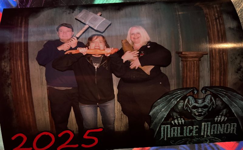Those dwelling within the manor delivered every bit of anguish and horror we were longing for. Unforeseeable scares, ghastly creatures lurking below and above us, grisly scenes of victims who looked like they had been cook– I mean, staying there for some time, before we arrived. (Some long before we arrived…) The threats literally had us wondering if we would make it out of the haunt ourselves, and oftentimes it felt like we would be residing among the haunting souls within the ominous walls of Malice Manor. We, however, lived to tell the tale and encourage you, if you dare, to take a chance and experience the thrills and chills of a place many tortured souls call home. The “pent-up” and electric energy at Malice Manor is one to experience, and we hope that you do!