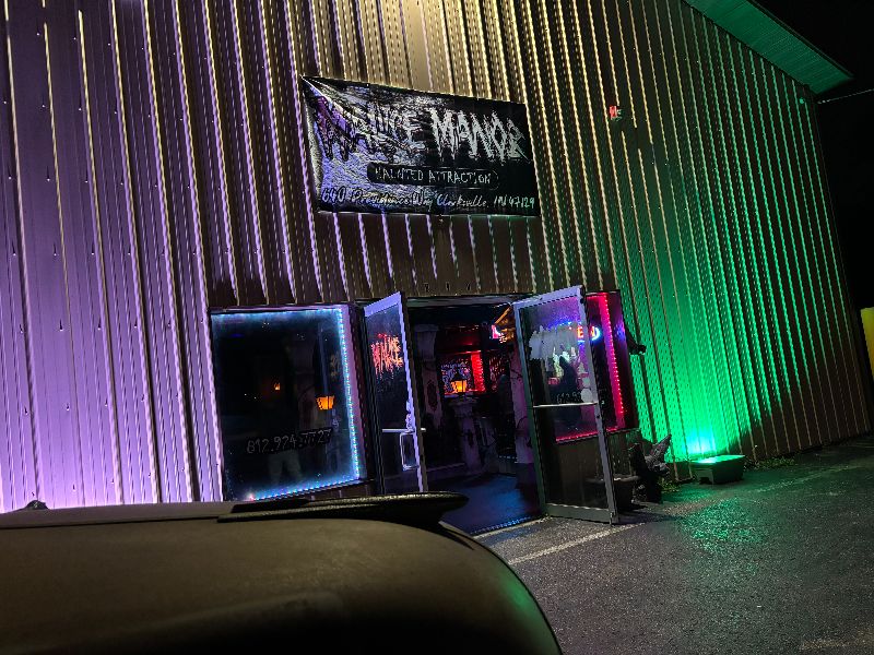 Malice Manor wasn’t too hard to find. Their sign was lit up with different flashing colors above the front door and we could see it from the street. Parking was free – they had a few spaces out front, or arriving customers could park in one of the nearby lots. If possible, we’d love to see more decor added out front to hint that a haunted house is there. A lit-up sign out front reading “Haunted House” or one a little further down the street, pointing in Malice’s direction, may help too.