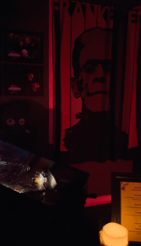 Upon entry into the main “Frankenstein” room, we were suddenly attacked by what we interpreted as the monster himself, who corralled one of us towards a waiting bed and boxed us in – it was almost like the monster might start trying to reanimate us already very jumpy humans! This cast had a particular talent for disappearing amongst the diaphanous draperies that hung around the place and then blink into existence again before us.
