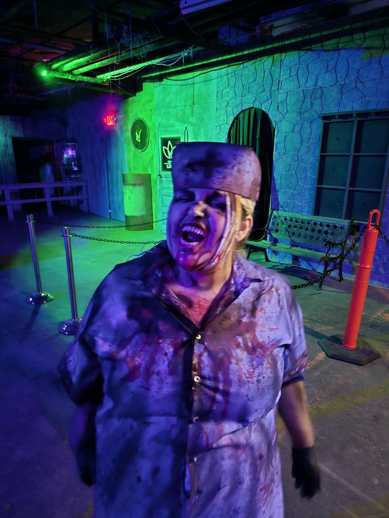 Despite these challenges, several standout performances elevated the evening. Doctor Cutter delivered an electrifying and commanding performance that kept us on edge, while Nurse Missy Carriage made a lasting (and grotesque) impression with her disturbingly committed portrayal – complete with unsettlingly realistic prop work. We also experienced an impressive SFX-based scare within the Bunker that caught our entire group completely off guard. Credit to that actor for impeccable timing and execution.