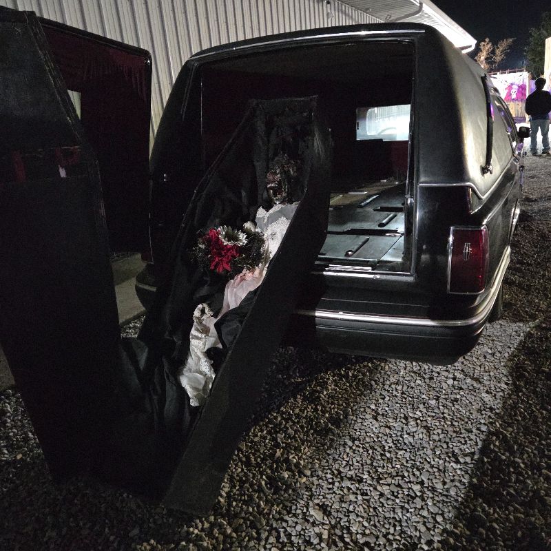 Outside the main attraction, queue actors entertained the crowd well, and seeing multiple people run from the finale kept things lively. In the future, adding games or a bonfire could keep guests engaged even longer. There was also a food truck selling strawberry lemonade and zombie “ghoulaid,” as well as a merch booth and a hearse for photo opportunities to help the memory of this Land of Chaos last.
