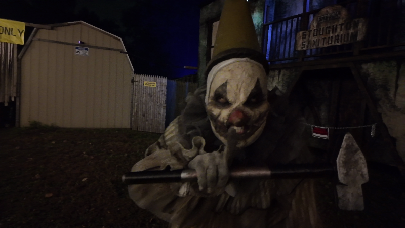 A few scares came from fairly unpredictable spots, including the camp counselor who came bursting out of a tent, really giving me a good startle. Early in the asylum section, there is an actor behind a slat wall that I was certainly not expecting, and the junkyard attendant, who looked suspiciously like Santa Claus, delivered a ton of energy with his scares. One of the best scares came near the pumpkin patch scene, where an actor scurried across the ground on all fours at a very high rate of speed. I can’t imagine that movement is easy to do, and even less so at that speed.