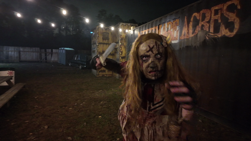 Typically, when I visit a haunt, I will try to follow other groups so that I can see how actors will interact with different parts of the group. At Nightmare Acres, I arrived a little bit later in the evening, and it was slowing down for the night. Because of this, it was a little harder to gauge. I can see how actors would be able to evenly distribute scares, coming from the sides, behind, and in front of groups.