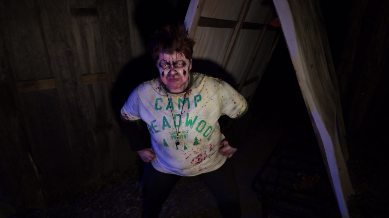 The actors that were present, however, were extremely full of life and energy. They took every opportunity to engage in dialogue with me, no matter how many stupid jokes I would make. I would like to extend my gratitude to the actor in the opening scene where the rules video plays, for laughing at said dumb jokes. This cast is certainly very talented when it comes to improv while staying in character, and that is very much appreciated. There are also tons of unique characters here. Not just in design, but in the roles the characters have. A fine example of this is the camp counselor, who reminded me of my middle school gym teacher and had the attitude to match. This woman seemed ready to make me do a hundred pushups, run for ten miles, and swim some laps around the lake. She is far and away the epitome of a stereotypical camp counselor, and I would not be surprised if she worked at a summer camp.