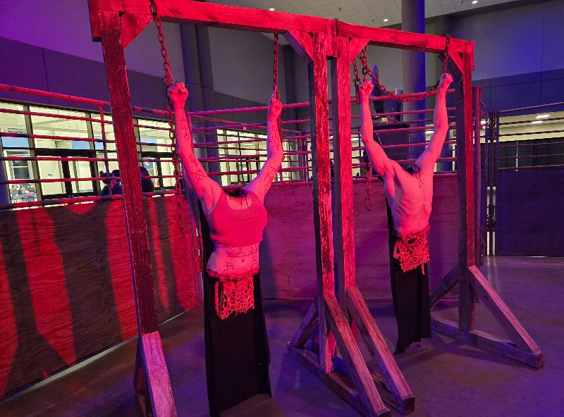 No need to add bad weather to your list of fears; this temporary haunt is all indoors, located inside the exhibition hall of the event center. It’s a single-level with even floors and no stairs. Neither haunt had an excessive amount of blood, gore, or nudity, making them a safe option for families or younger haunters.
