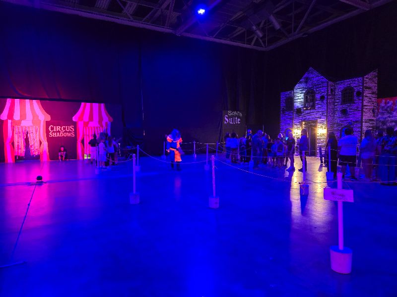 The two haunts are both located on the right side of the room, with the extra activities along the back left wall. There is a lot of space, so the area doesn’t feel overly crowded, and it’s easy to move around. Both haunts exit near where they start, so you exit right back into the festival midway and on to your next activity.