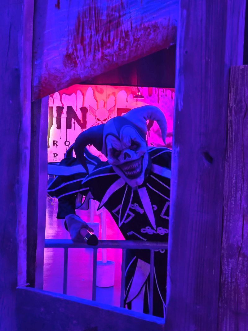 This haunt used a ton of different scare tactics, and it was more than just popping up and yelling ‘Boo’! While there were some jump scares, there were also distractions, phobias of clowns and darkness, intimidations, a little blood and gore, victimizing, and camouflage, just to name a few.