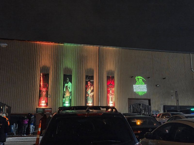 Standing in front of Nightmare on Edgewood was different for us this time. Tonight, on Halloween, marks the end of an era. Kevin Cook and his team are locking the doors one last time. And next season, Nightmare on Edgewood will likely be under new management. So one last time, we enter Kevin’s horror movies! Popcorn anyone?