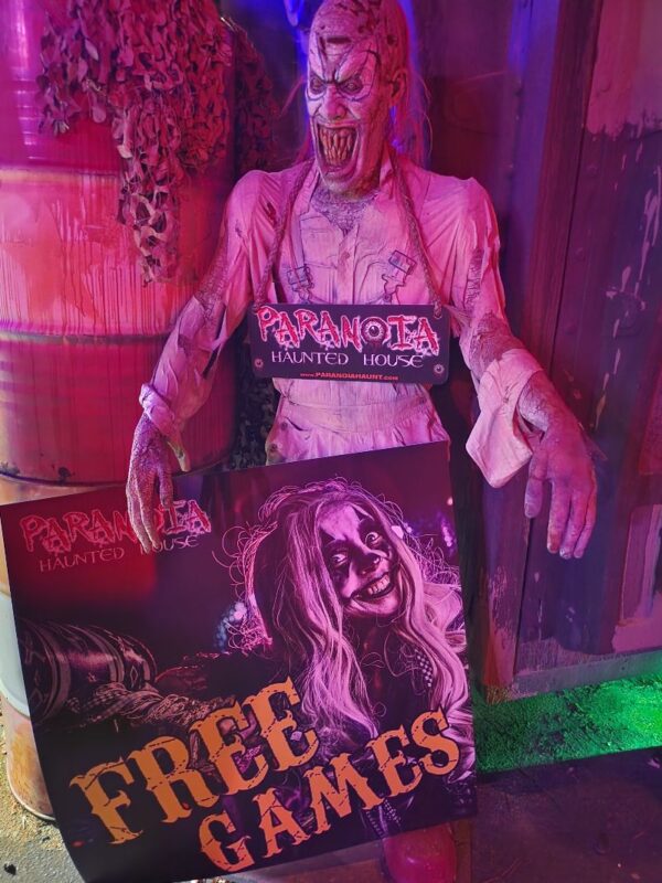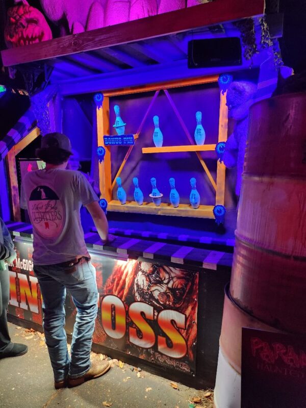 Immersion outside of the formal haunted house is a challenge for many haunt businesses. This is where Paranoia really excels! Each time you exit the haunts and gift shop, you walk onto a very, very active and colorful midway. Everywhere you look, there are photo ops, games, and multiple wandering characters who actively circulate throughout the crowd. The music, lights, and activity make this midway a place you want to spend time in.