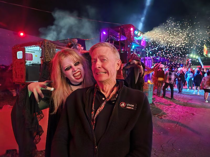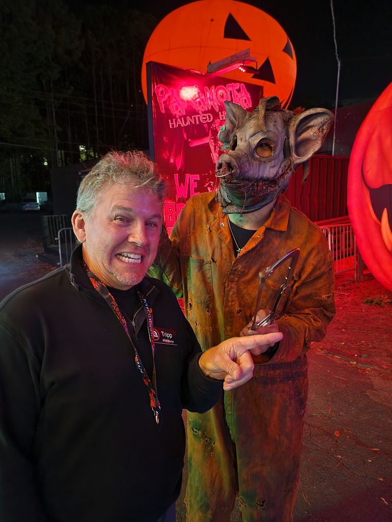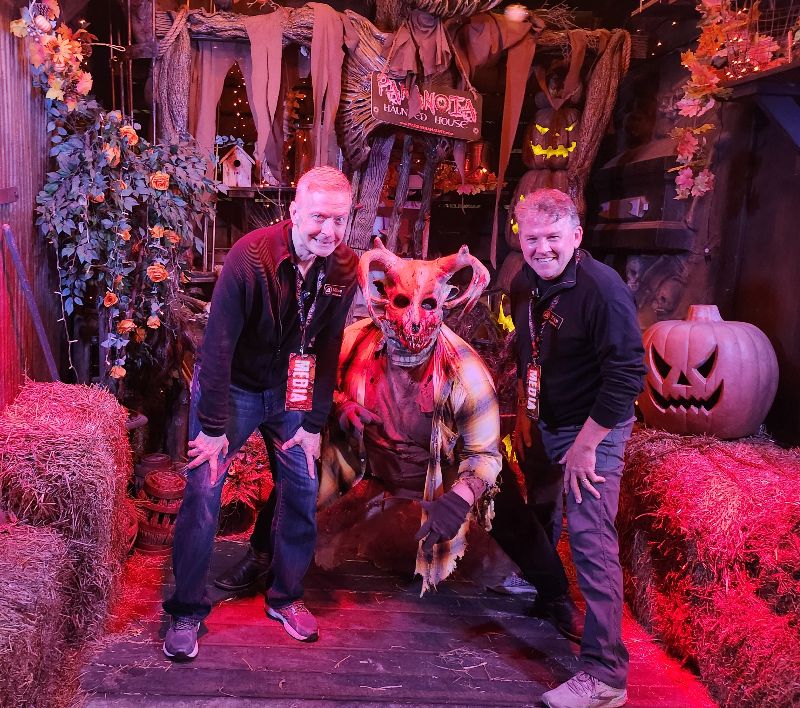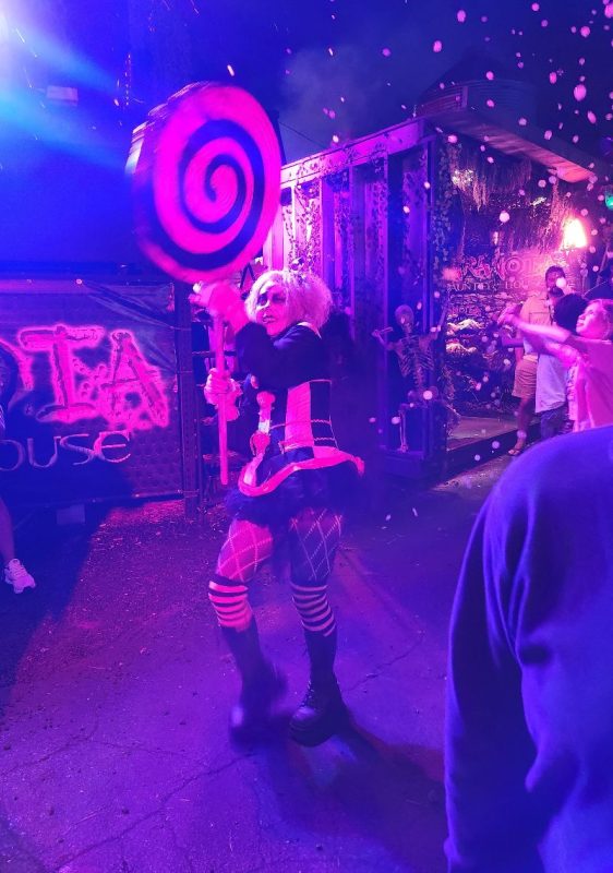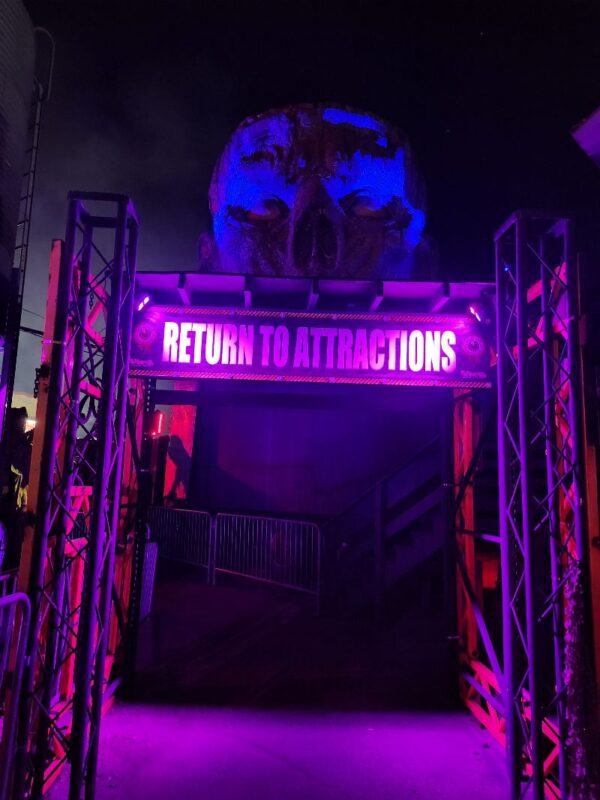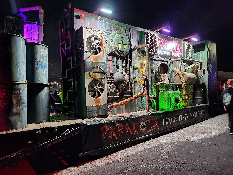 Beyond the haunted houses, Paranoia offers a vibrant midway packed with energy and activity. Guests can enjoy food and drink vendors, free games, immersive photo-op setups, and music that keeps the excitement alive between scares. The atmosphere is electric. Actors might pull you into smoke-filled bubbles to dance alongside the live DJ spinning from the stage. The haunt’s designers have drawn heavy inspiration from rock concerts, bringing that same high-octane energy to the midway for a full night of fun that extends far beyond the haunted houses themselves.