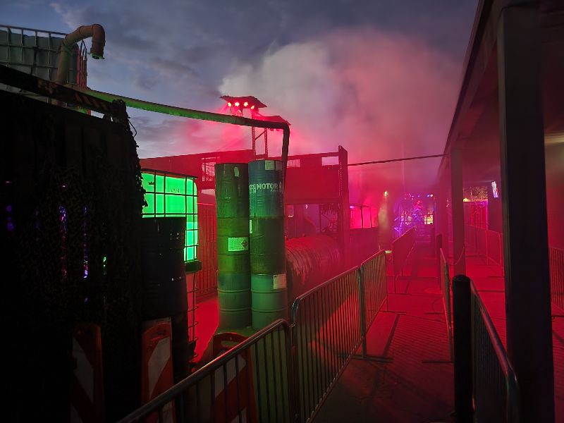 The special effects in Meltdown complement its chaotic, industrial laboratory theme. The experience is packed with strobe lights that flash in rapid bursts, heightening the sense of panic and confusion as you move through the maze. Animatronics descend from above, adding unexpected layers of movement and surprise that make the environment feel alive and hostile. One of the most memorable effects is the scene filled with extremely active body bags, thrashing and jerking with unnerving realism. Combined with the metallic clangs, bursts of steam, and flickering light patterns, these effects create an atmosphere that feels unstable and on the verge of collapse. Meltdown thrives on sensory overload, using every sound, flash, and motion to keep guests on edge from beginning to end.