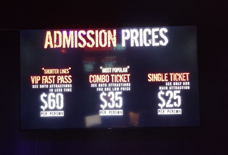 A combo ticket for Paranoia Haunted House costs $35, and our combined walkthrough time for both attractions was 21 minutes, giving an overall value of 0.6 minutes per dollar (MPD). While this ratio may seem a bit low, Paranoia more than makes up for it with the sheer volume of entertainment and atmosphere outside the haunts. If you visit on a Sunday or Thursday night, reduced ticket prices help boost that MPD value even further.