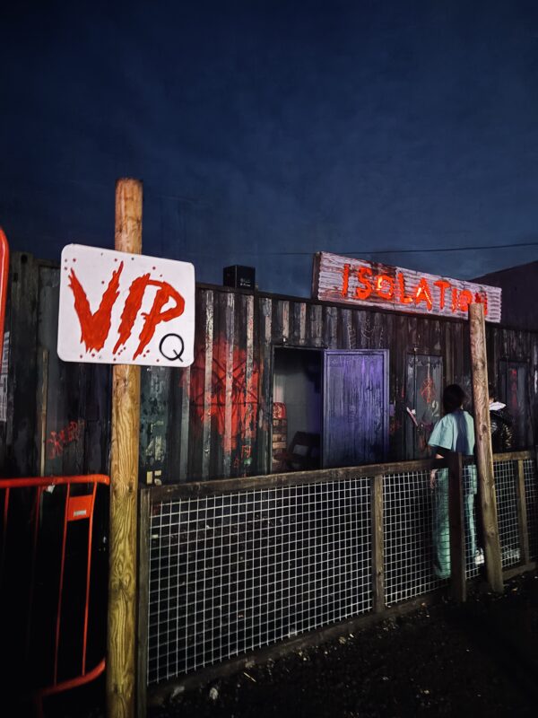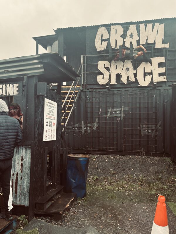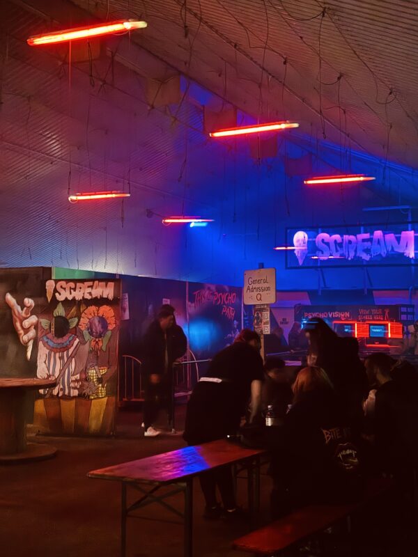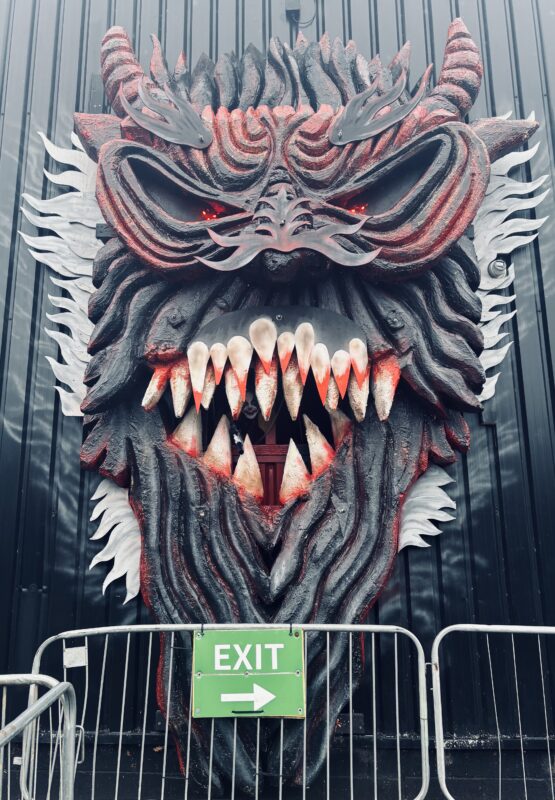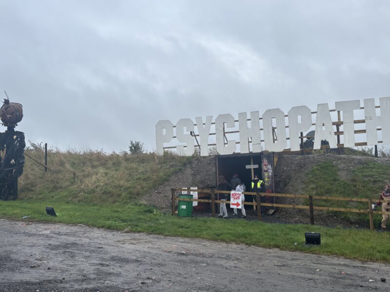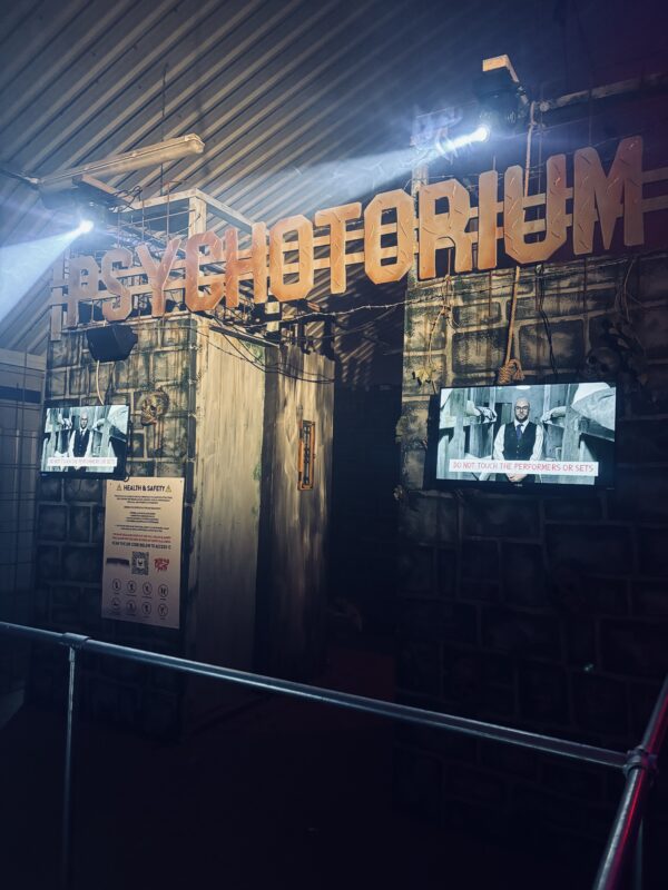 We were very impressed by how Psycho Path took such a vast site and made it easy to navigate and enjoy, all whilst providing kind and friendly service. The entrance to the park has excellent signage and good lighting, meaning that we had no trouble locating it. Once inside, the park expands from a central covered hub full of music and entertainment, and periodic maps are displayed on screens to help you find your way. If you are ever lost, members of staff are always there to show you the way, whether as a regular park worker, or a costumed cast member. In this way, Psycho Path really stands out. The cast on the doors of the haunts know their way around and will tell you in character where you need to go. They really know their stuff and will be able to point you in the right direction, albeit evocatively.