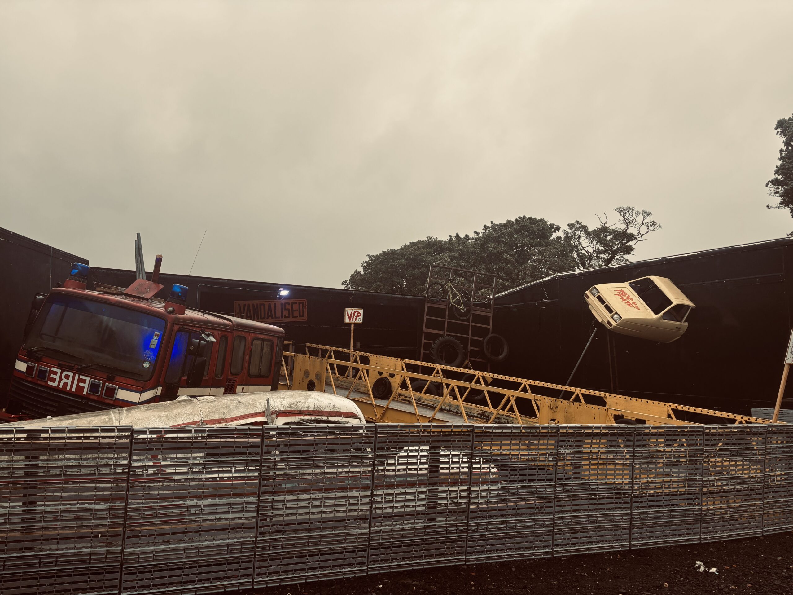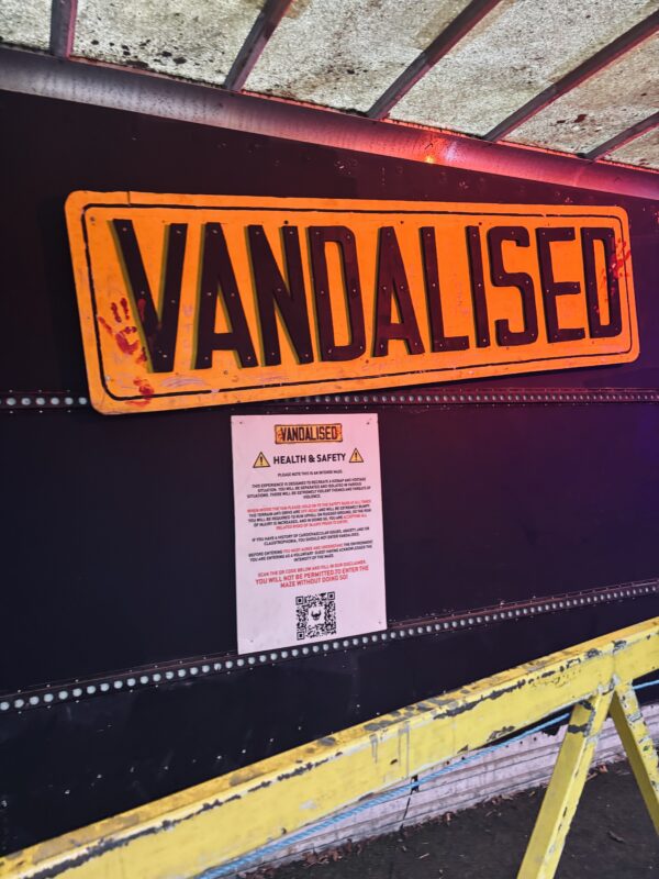 Other haunts had simpler sets. “Vandalise” takes you on an actual journey strapped into a van, but once you’re free to wander large set pieces, like a trio of mangled scarecrows, were visible at some points, but didn’t seem to be utilised. Other environments included clambering through vehicles and being temporarily imprisoned in a wooden shed.