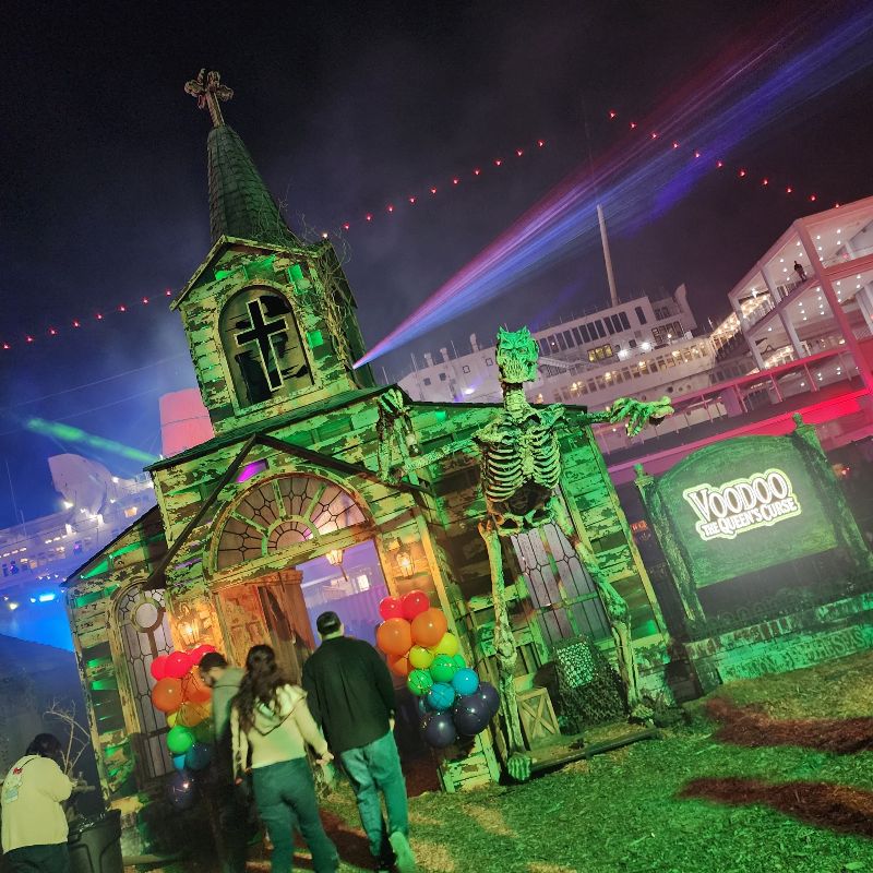 Beyond the mazes, the scares spill into the Shipyard, Carnival, and Voodoo areas, where you’ll find live entertainment, interactive characters, and endless eerie energy pulsing through the fog. And if that isn’t enough to test your courage, don’t miss Lady Mabel Presents: The Summoning of Samuel, an immersive theatrical experience.